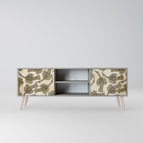 INDIAN FOLK 3-Door TV Stand in Oak Effect -