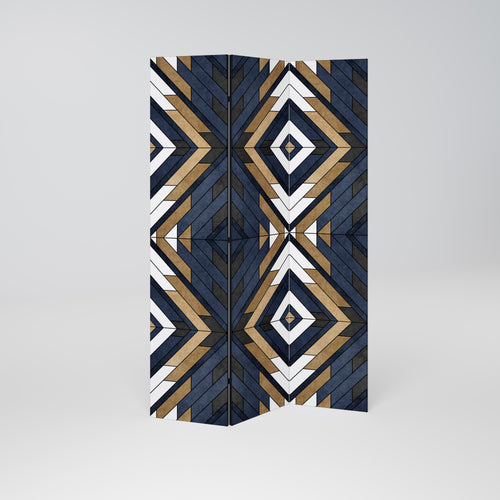 BLOMMOR PÅ MARINBLÅTT TV-BÄNK med 3 dörrar i ekeffekt -
