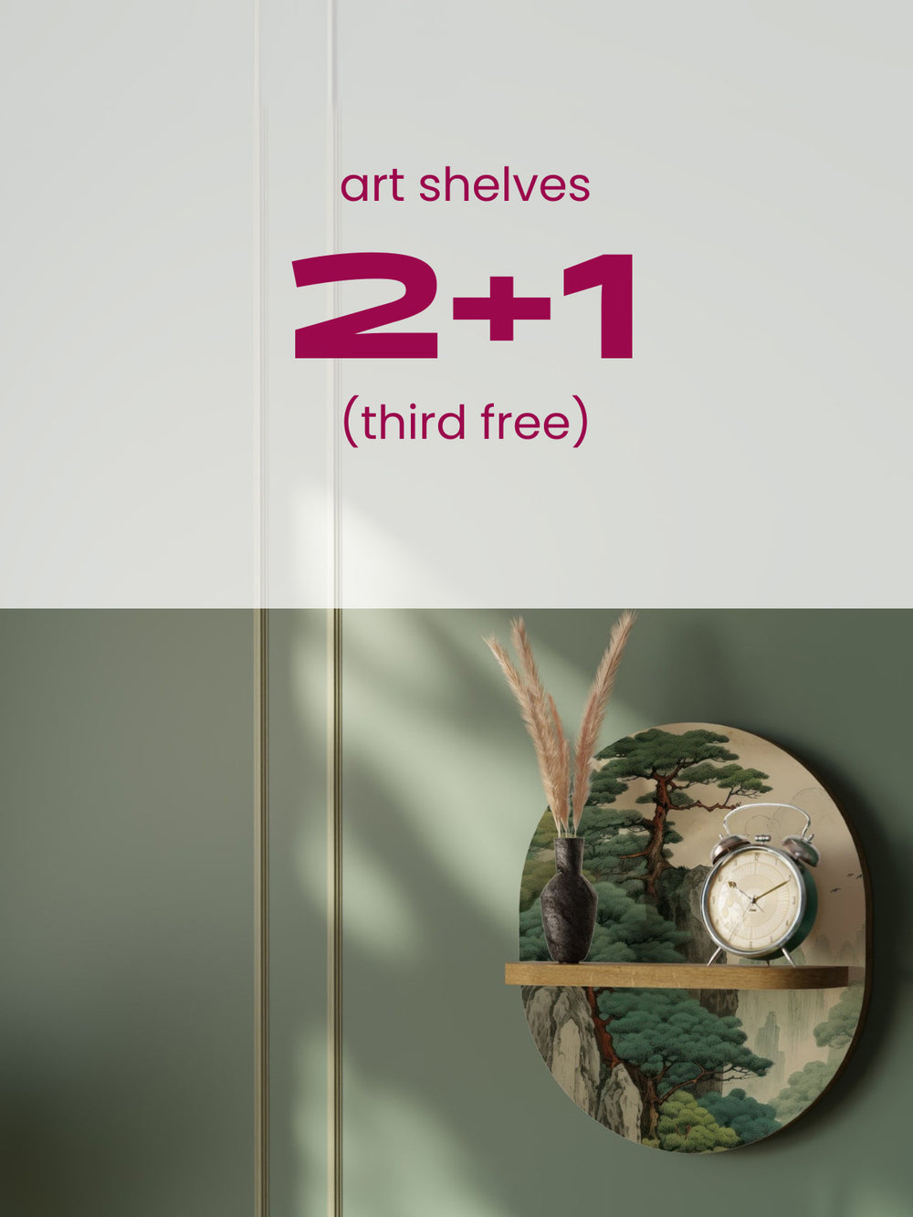 ABSTRACT FACES Round Art Shelf In Oak Effect